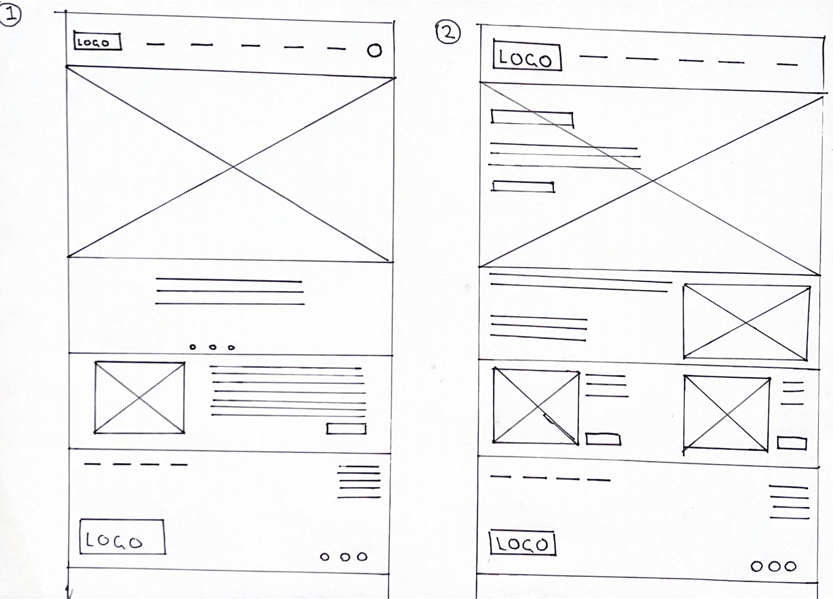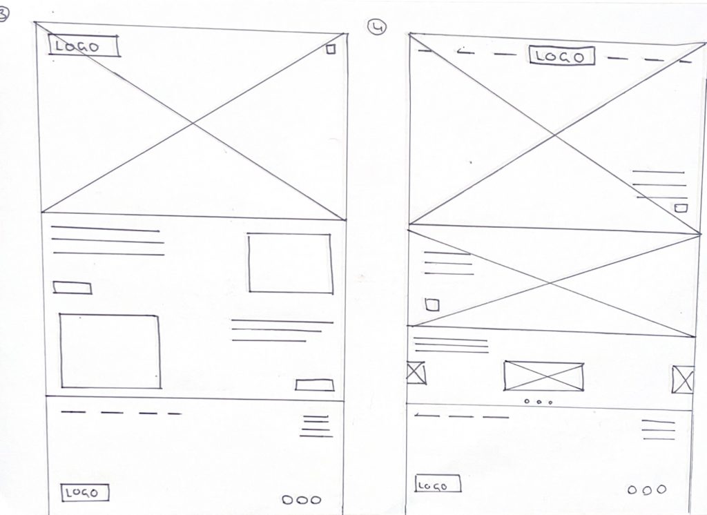 Beginning with paper wireframes allows you to get ideas down without pressure or judgement. These first wireframes are usually quite messy and imperfect, as their purpose is to show ideas generation for different layouts. This stage is very loose and experimental, and is a quick and efficient method for producing low-fidelity wireframes.