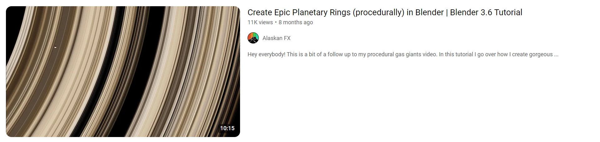 AlaskanFX (2023) Create Epic Planetary Rings (procedurally) in Blender | Blender 3.6 Tutorial [Video]. Available online: https://www.youtube.com/watch?v=-lXHSHJBo3g [Accessed: 12/04/2024]