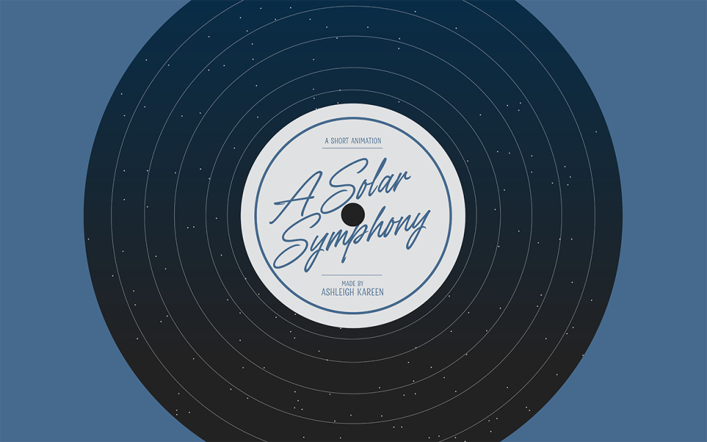 To begin, I created a title card. My title card shows use of micro/macro readings as it is designed to look both like a vinyl record, but also a field of stars within a solar system. Tufte describes micro/macro readings as delivering viewers “a freedom of choice, that derives from an overview, a capacity to compare and sort through detail” (Tufte, 1990).