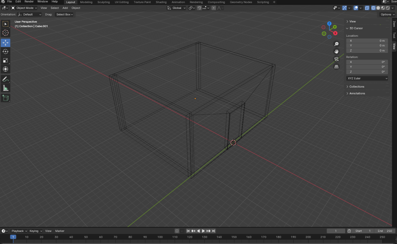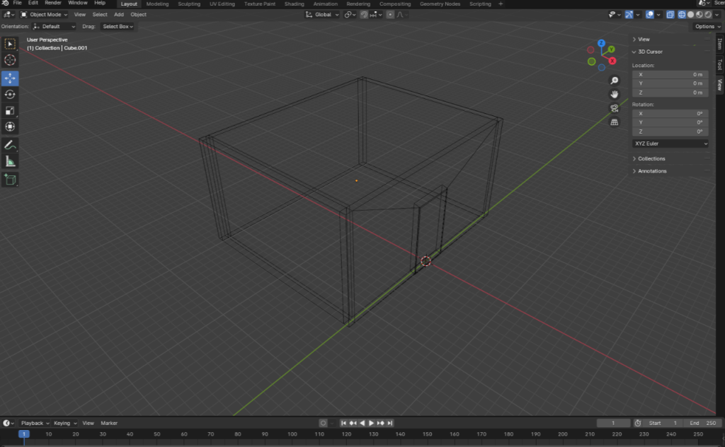 Initially, I had planned to work in Unity. I had followed some tutorials for ARCore and ARKit to create mobile-based experiences. Using Blender, I made a ‘room’ container which I could mask over to create a doorway leading into a room overlayed above the ‘real world’.