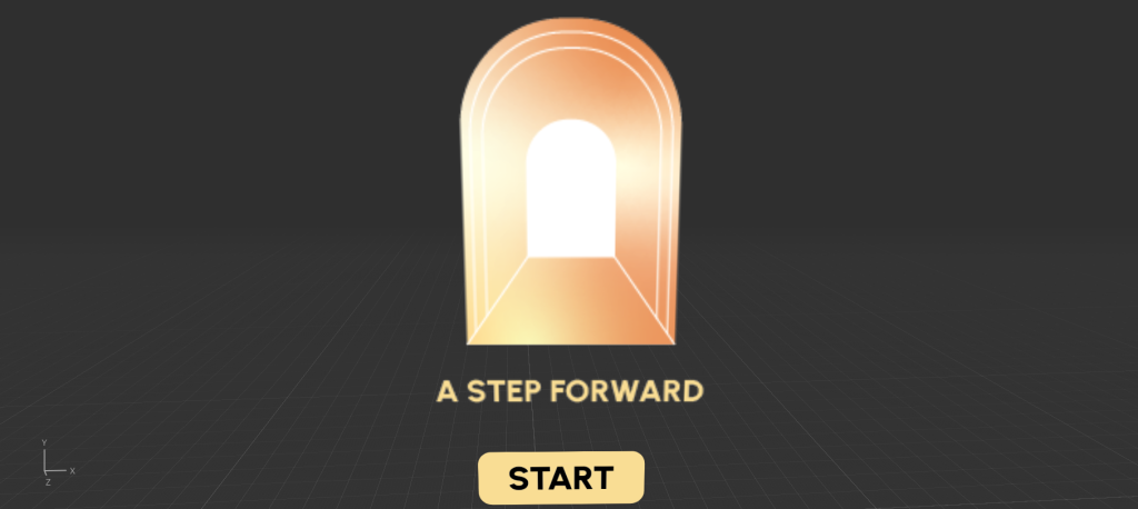 I also produced a logo for my project, which I named ‘A Step Forward’. The logo shows a warm, glowing archway, inviting the user to ‘step forward’. My aim for this logo was to have it displayed at the beginning of the AR experience along with a ‘start’ button so that the user feels eased in and can choose to begin when they feel ready. When clicked, both fade away to reveal the experience. This way, the user can relax more and doesn’t feel so suddenly overwhelmed.