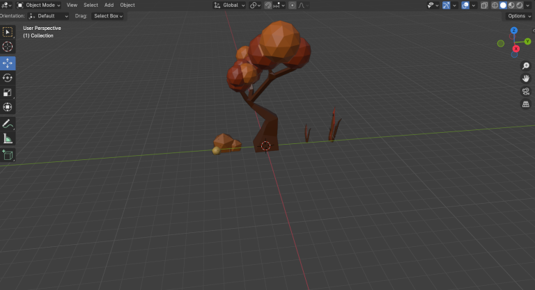 From here, I experimented more with the tap triggers. I decided to allow the user to change the season by clicking on the trees, which then transformed the scene from a spring setting to an autumnal one. The foliage turns from green to orange, and the rabbit transforms into a fox, which was another one of the preset models in Aero. The user can swap back by clicking again, which reverses the transformation. I left the flowers the same to prioritize file space, as it would mean reimporting lots of flowers again, which may bulk the file up too much and cause slower load times. I created some low poly leaves which I animated to fall down from the tree, making the scene feel more autumnal.