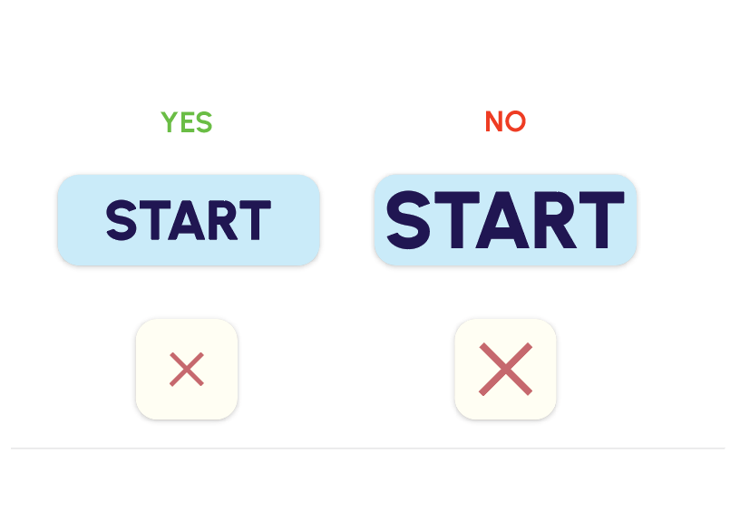 I also took into consideration the padding inside of the buttons. Adding space around the text feels more breathable, whereas the tightly packed text feels claustrophobic and trapped, which I don’t want the user to associate with the experience.